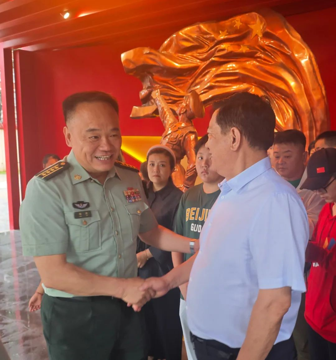 (滕和顯主席與中國人民解放軍儀(yi)仗司禮大隊大隊長韓捷親切握手)